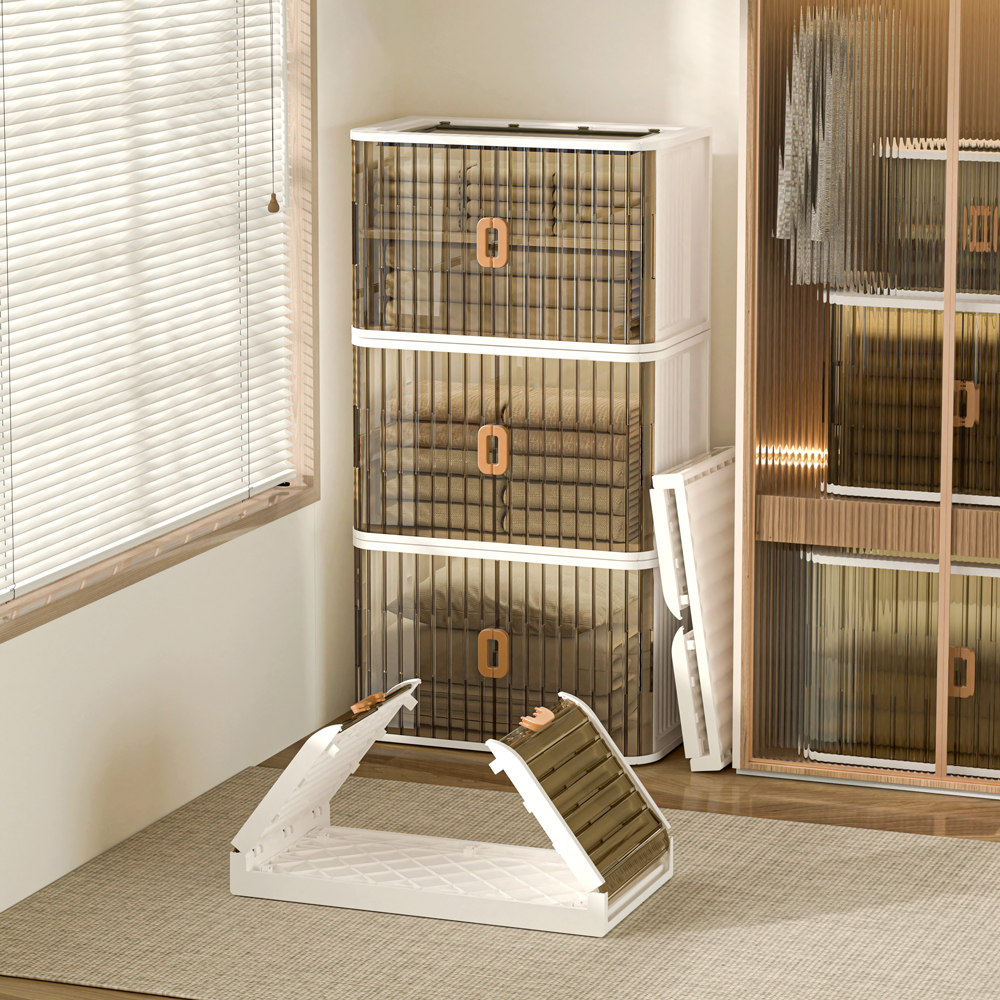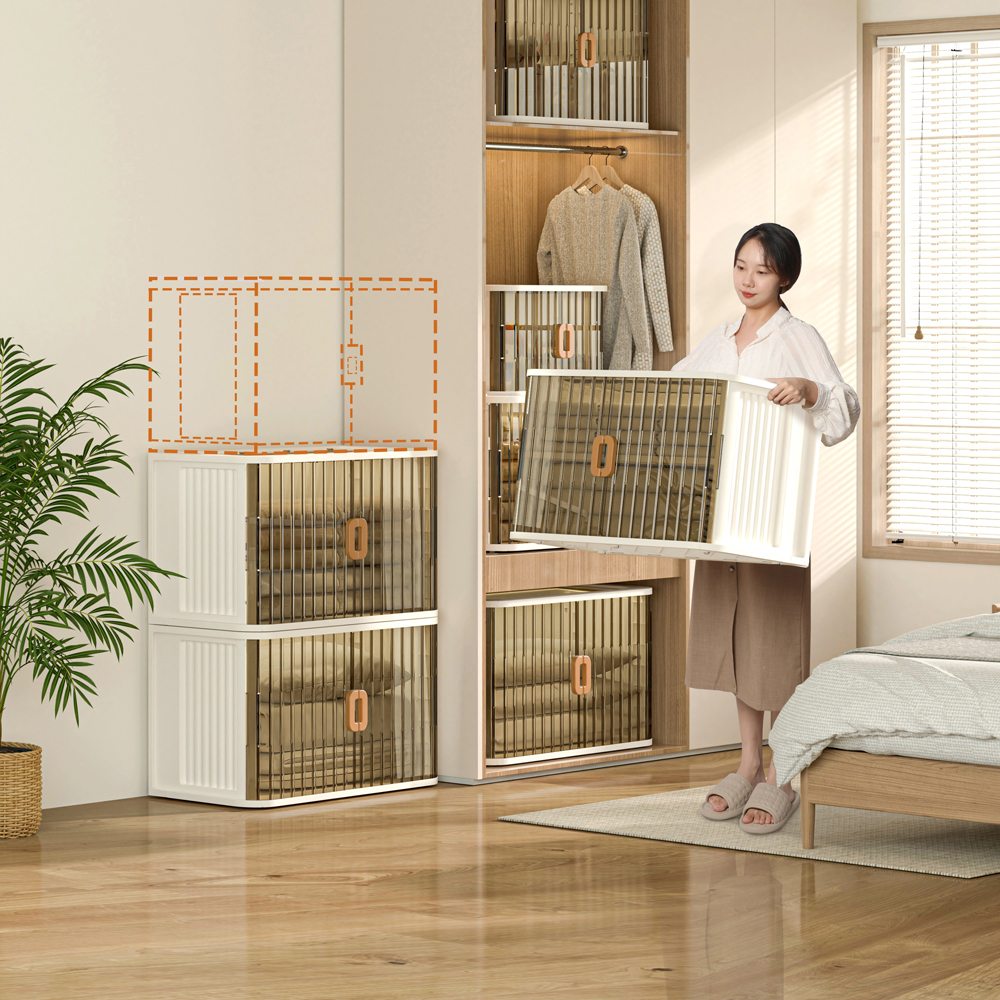 無論是從側邊還是上方,都可以輕鬆取物。這意味著即使收納箱被堆疊在一起,你也不需要擔心因為空間限制而無法取出裡面的物品。