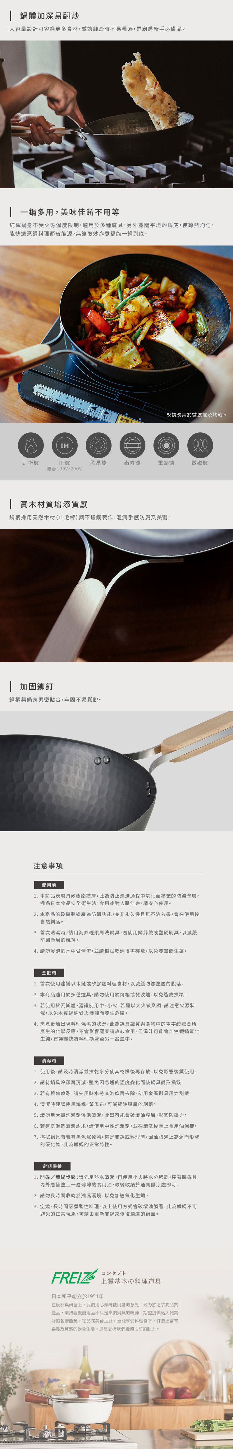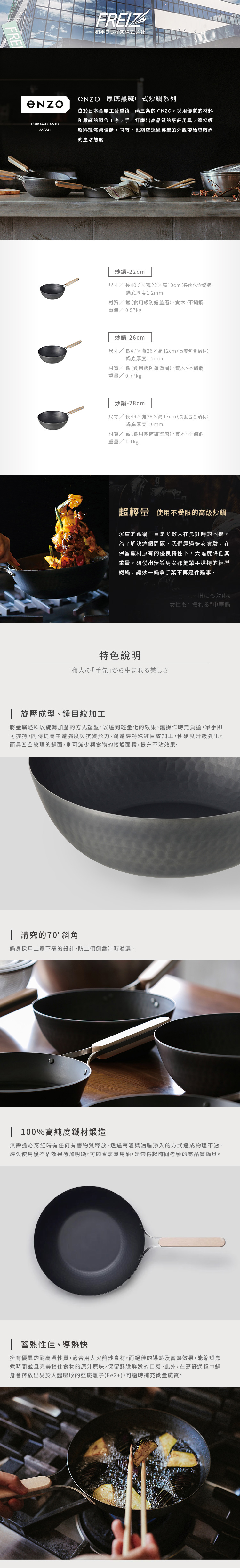 【日本和平FREIZ】enzo 日製木柄厚底黑鐵中式炒鍋(IH對應)-28cm