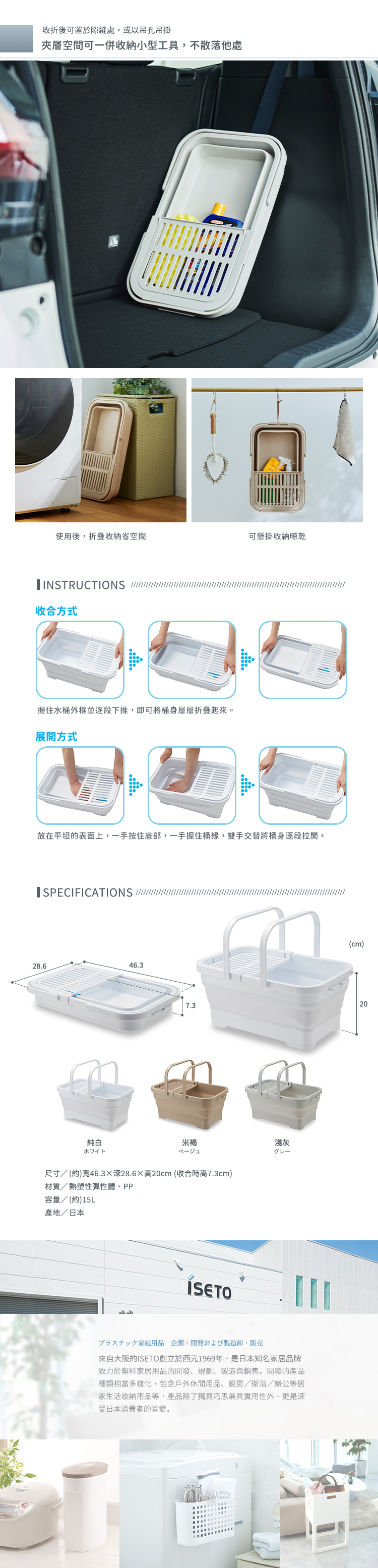 尺寸:(約)寬46.3×深28.6×高20cm (收合時高7.3cm)