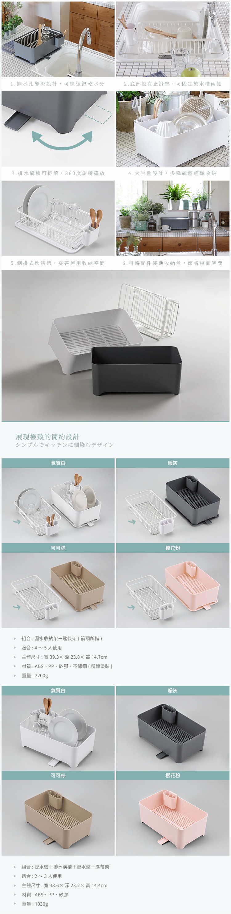 【日本和平FREIZ】YOHAKU 多功能可調式碗盤瀝水架8件套組-多色可選