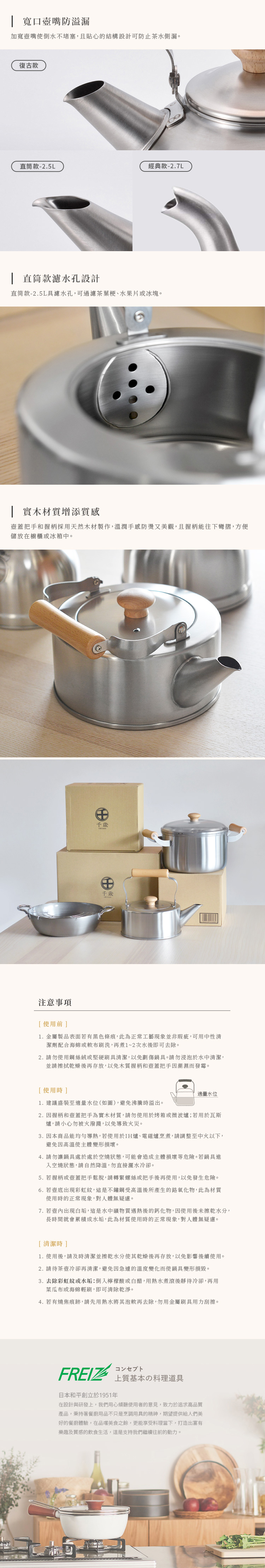 【日本和平FREIZ】千歲 日製木柄不鏽鋼直筒茶壺(IH對應)-2.5L
