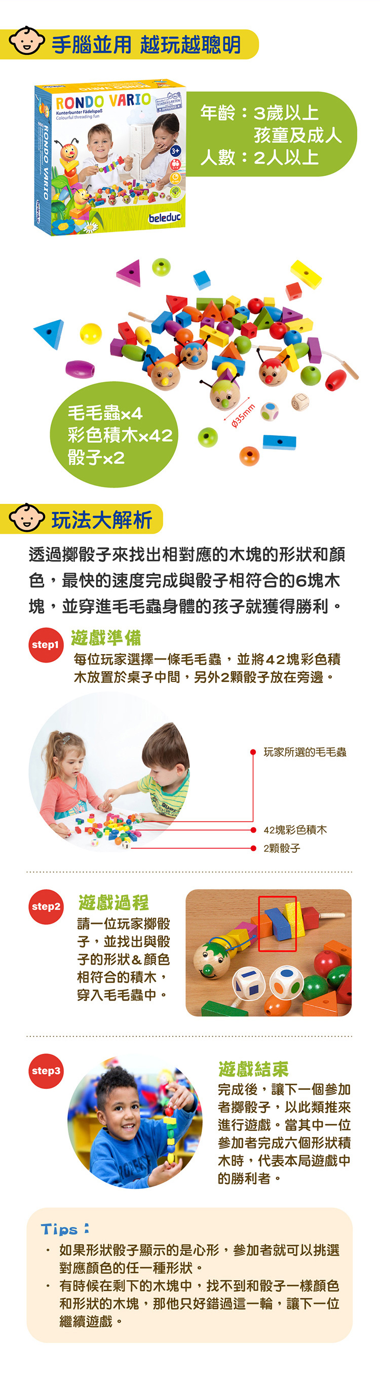 配件數量 : [毛毛蟲] 4隻、[彩色積木] 42塊、[骰子] 2個