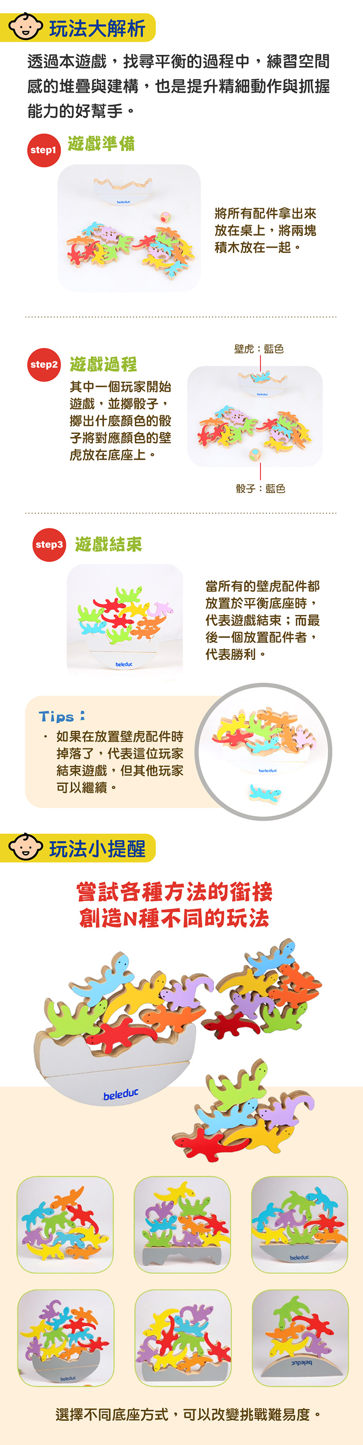 配件數量 : [平衡底座] 2個、[壁虎配件] 18塊、[骰子] 1個