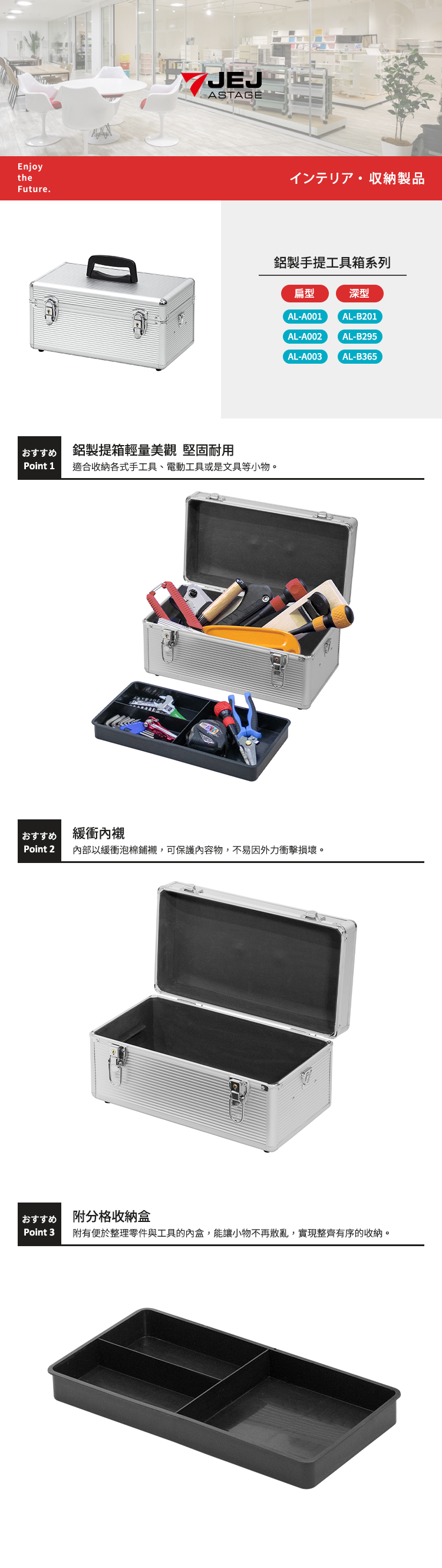 【日本JEJ ASTAGE】鋁製深型雙層可肩背手提工具箱 (AL-B365)